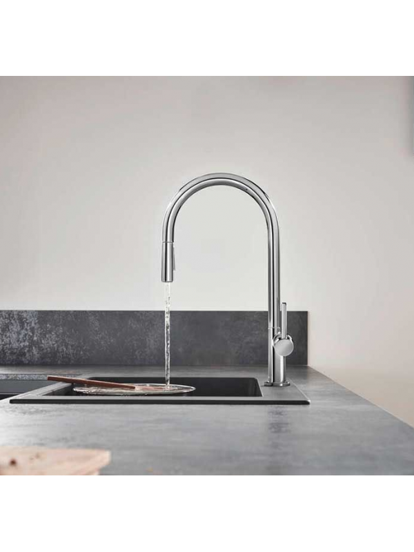 Opremljena tušem na izvlačenje omogućava jednostavno pranje sudova, punjenje posuda različitih veličina , kao i održavanje same sudopere.