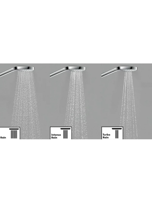 Tuš set se sastoji od klizne šipke,tuš creva dužine 1600mm,i ručnog tuša prečnika 110mm sa tri funkcije mlaza - Rain,Intense rain,Turbo rain