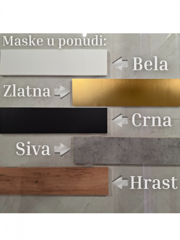 • Masku koja je na fotografiji u boji drveta mozete birati: bela, zlatna ,siva,crna i hrast.