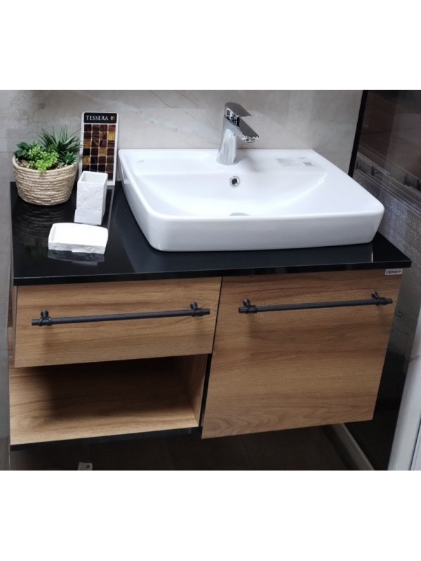 DENKOKontesa PIRAMIT 90 MDF donji deo - konzolna - Hazar/Crno 84130Konzolni ormarić od medijapana, dolazi u kompletu sa umivaonikom