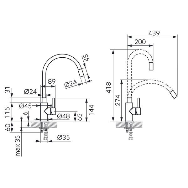 Baterija Inox Sa Flexi Crnim Izlivom Za Sud.Zumba/BZA4BSS