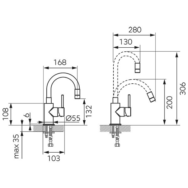 Baterija Za Lavabo Fleksi Crni Izliv, Fiesta/BFI2FB