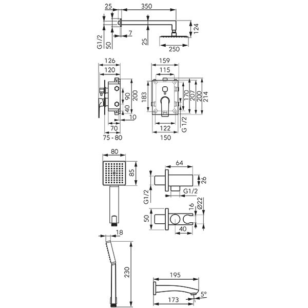 • tuš ruža kvadratnog oblika 250×250 mm