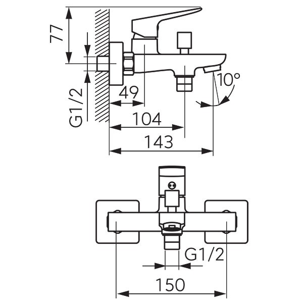 • ekscentri za postavljanje (G½ razmak između tople i hladne vode 150 ± 20 mm)