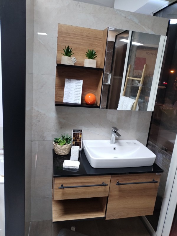 EUKontesa PIRAMIT 90 MDF gornji deo - Hazar/Crno 84131Ogledalo sa ormarićem i policama, izrađeno od medijapana..
