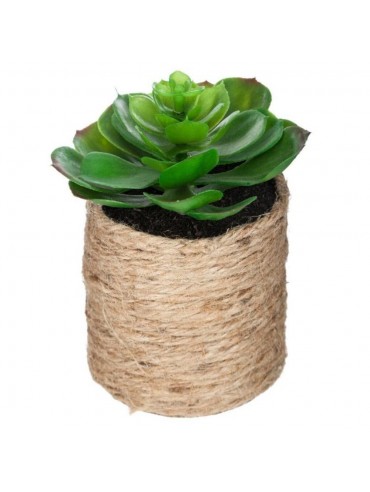 veštačka biljka u saksijI prekrivena pletenom konopljom. Visoka 16 cm. Svojim dizajnom savršeno će se uklopiti sa vašim suvenirima sa putovanja i prirodnim materijalima.