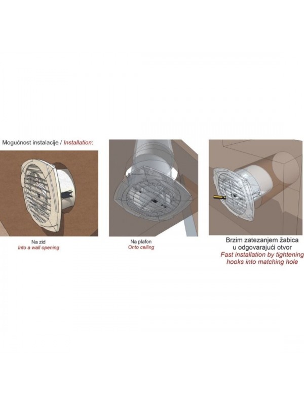 Kupatilski ventilatori se koriste za ventilaciju u stambenim i poslovnim prostorijama. Sprečavaju vlagu i neprijatne mirise. Lako se montiraju na otvor zida ili na plafon zatezanjem žabica instaliranih u telu ventilatora. Termička zaštita sprečava pregrevanje motora. MTG ventilatori su lagani, tihog rada i kvalitetne izrade. Ventilator za kupatilo fi 100 se montira na aspiratorsko crevo prečnika 100mm.